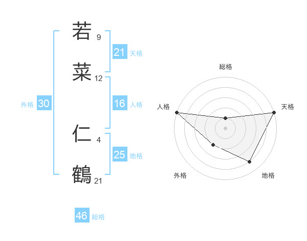 若菜 仁鶴さんを姓名の画数から五運を鑑定