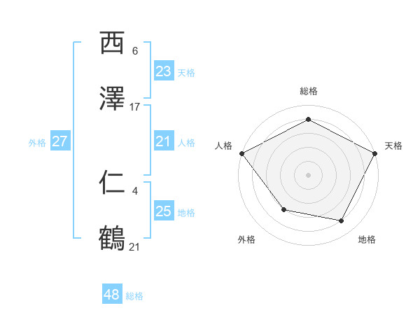 西澤 仁鶴さんを姓名の画数から五運を鑑定