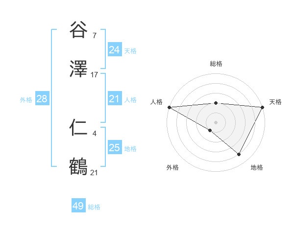 谷澤 仁鶴さんを姓名の画数から五運を鑑定