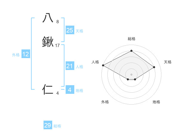 八鍬 仁さんの総格は29画の4点!