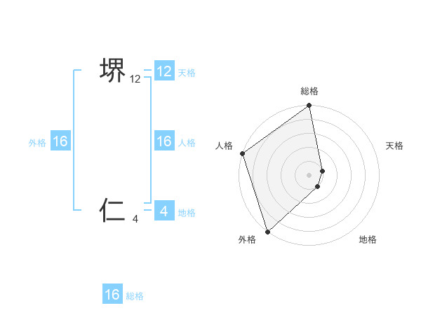 堺 仁さんの総格は16画の5点!