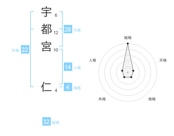 宇都宮 仁さんの総格は32画の5点!