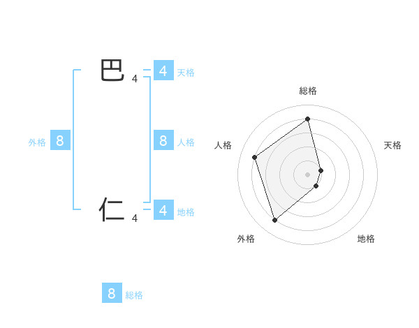 巴 仁さんの人格は8画の4点!