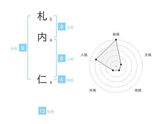 札内 仁さんの総格は13画の5点!