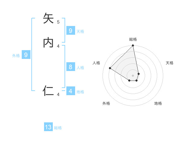 矢内 仁さんの総格は13画の5点!