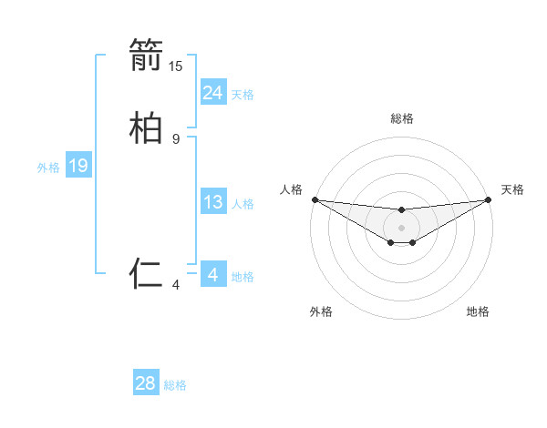 箭柏 仁さんの天格は24画の5点!