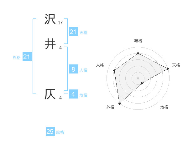 沢井 仄さんの天格は21画の5点!