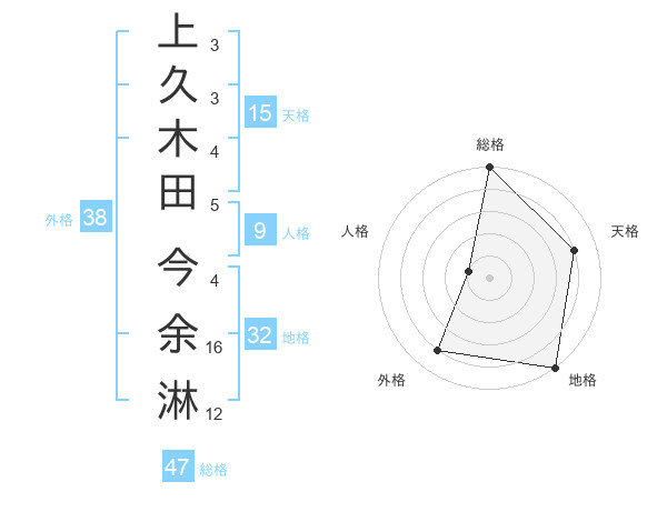 上久木田 今余淋さんの外格は38画の4点!