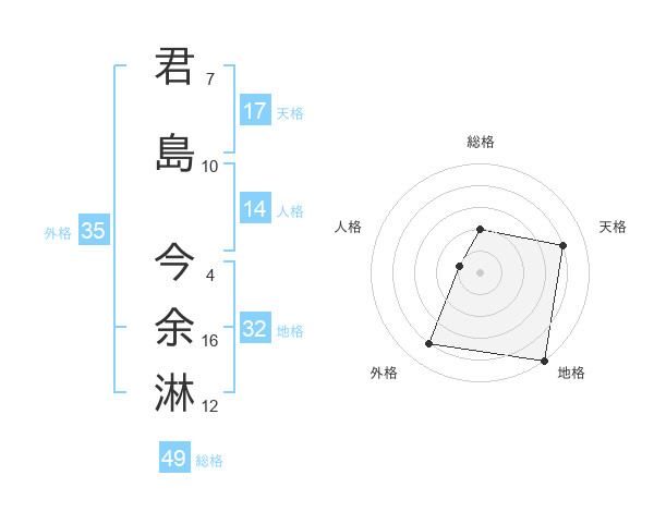 君島 今余淋さんを姓名の画数から五運を鑑定