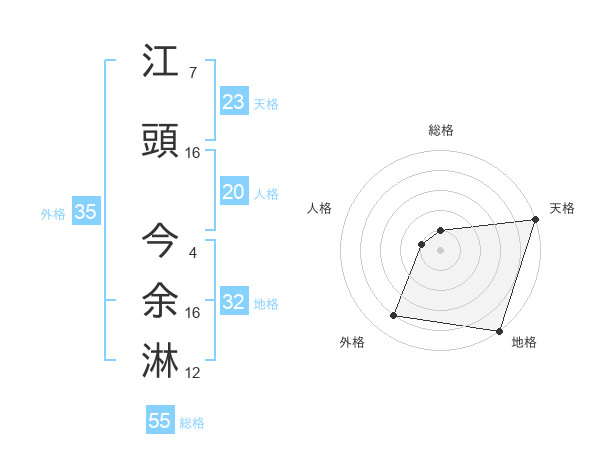 江頭 今余淋さんを姓名の画数から五運を鑑定