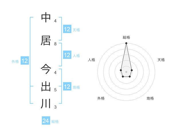 中居 今出川さんの総格は24画の5点!