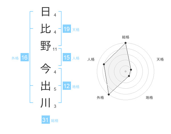 日比野 今出川さんの総格は31画の5点!