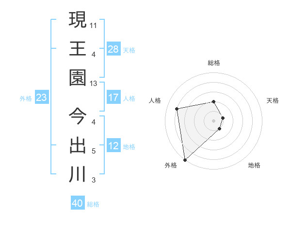 現王園 今出川さんを姓名の画数から五運を鑑定