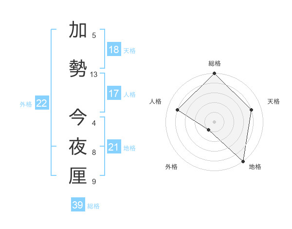 加勢 今夜厘さんの外格は22画の1点!