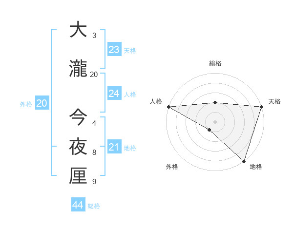 大瀧 今夜厘さんの総格は44画の2点!