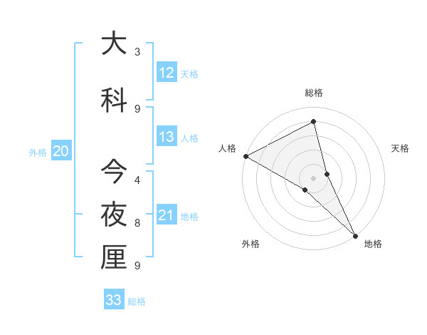 大科 今夜厘さんを姓名の画数から五運を鑑定