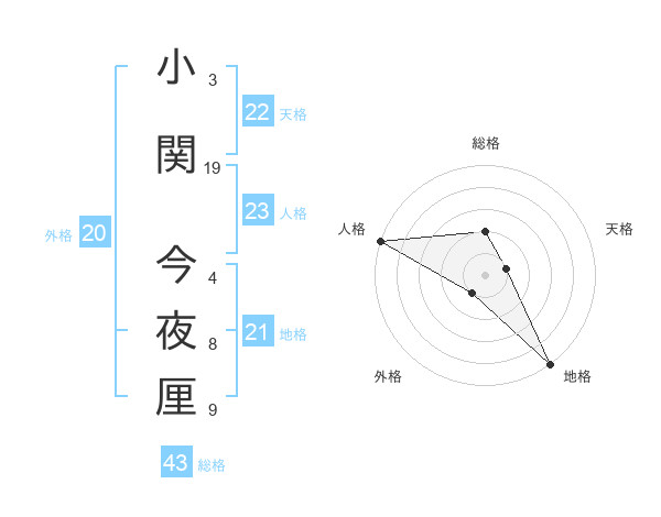 小関 今夜厘さんを姓名の画数から五運を鑑定