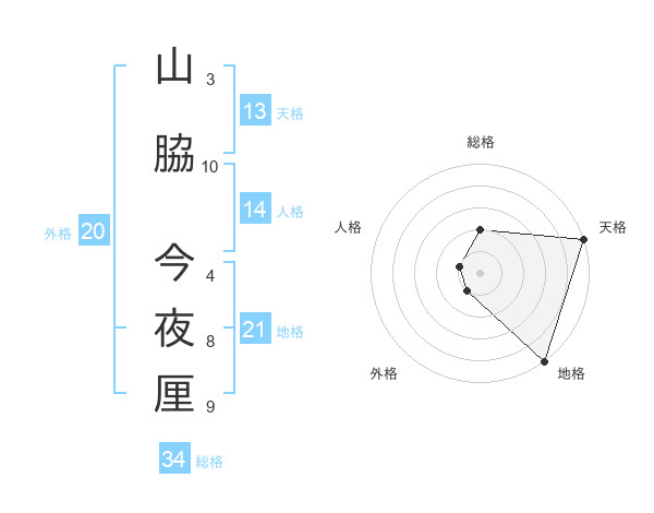 山脇 今夜厘さんの総格は34画の2点!