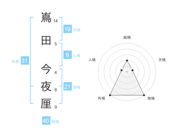 嶌田 今夜厘さんの外格は31画の5点!