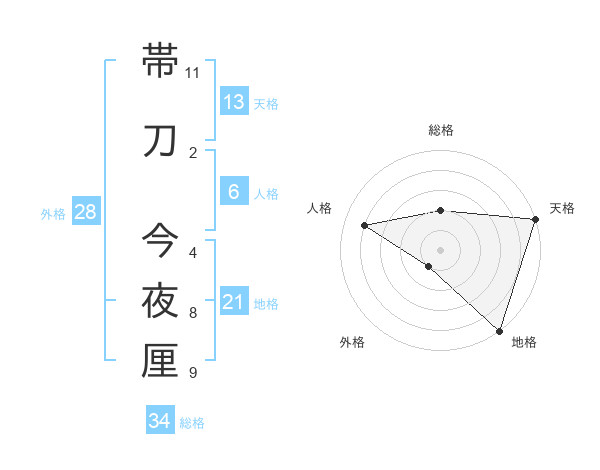 帯刀 今夜厘さんを姓名の画数から五運を鑑定