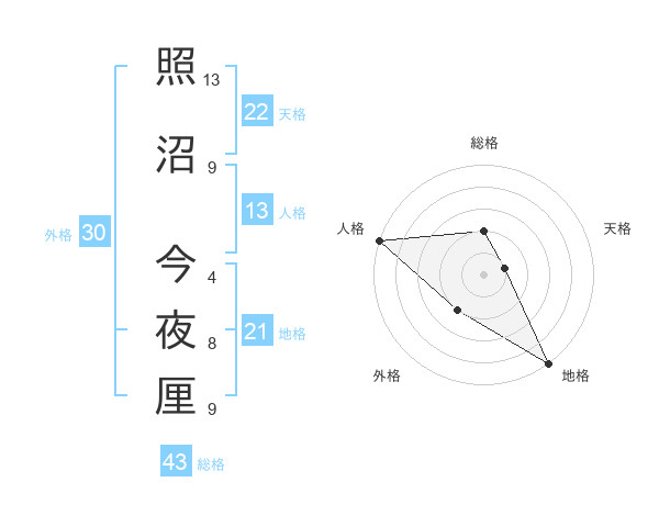 照沼 今夜厘さんの総格は43画の2点!