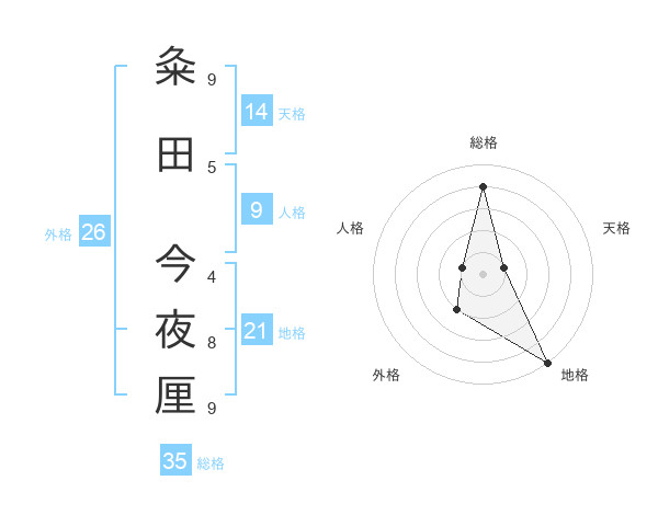 粂田 今夜厘さんを姓名の画数から五運を鑑定
