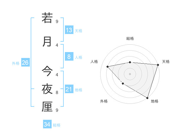 若月 今夜厘さんの総格は34画の2点!