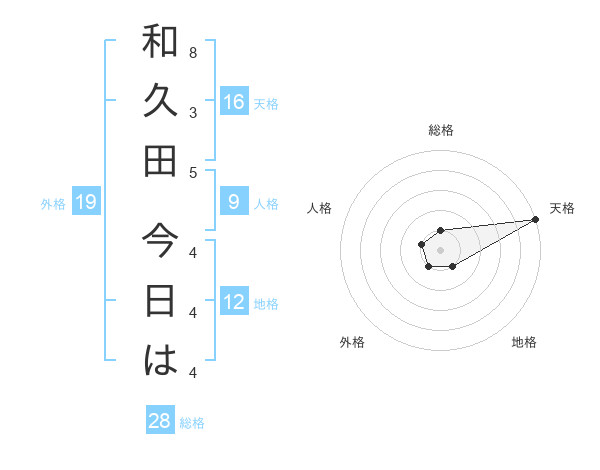 和久田 今日はさんを姓名の画数から五運を鑑定