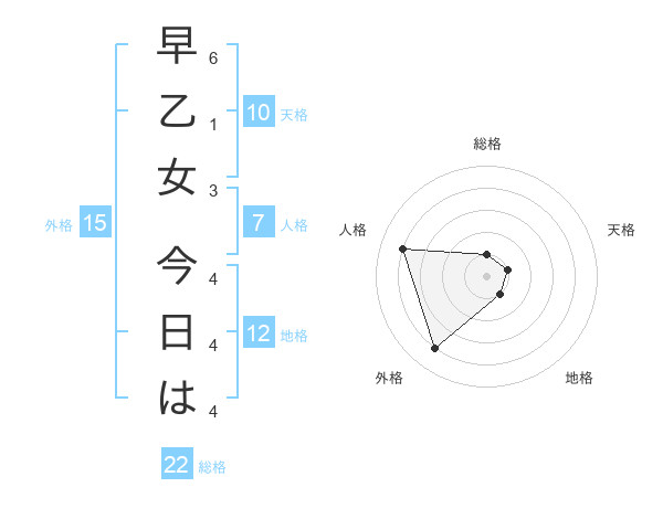 早乙女 今日はさんを姓名の画数から五運を鑑定