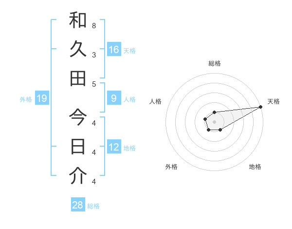 和久田 今日介さんを姓名の画数から五運を鑑定
