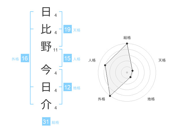 日比野 今日介さんを姓名の画数から五運を鑑定