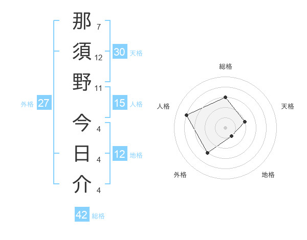 那須野 今日介さんの総格は42画の3点!