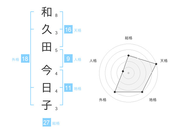 和久田 今日子さんを姓名の画数から五運を鑑定