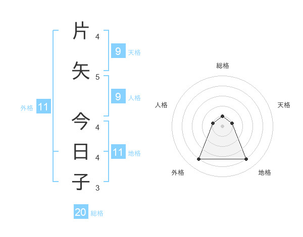 片矢 今日子さんの総格は20画の1点!