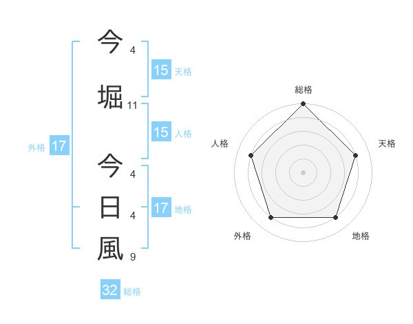 今堀 今日風さんを姓名の画数から五運を鑑定
