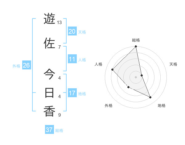 遊佐 今日香さんを姓名の画数から五運を鑑定