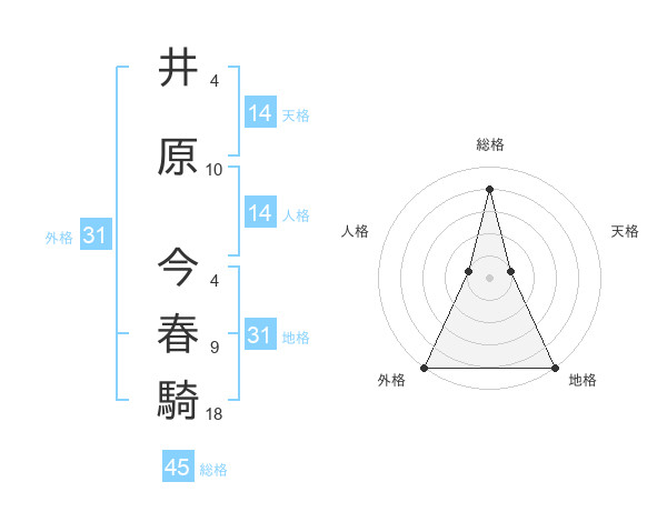 井原 今春騎さんの地格は31画の5点!