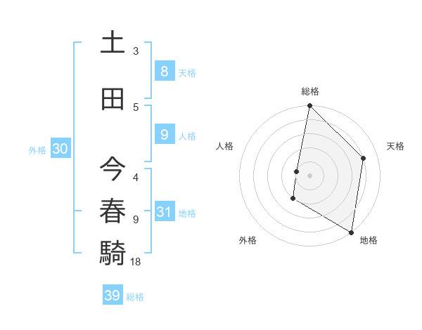 土田 今春騎さんを姓名の画数から五運を鑑定
