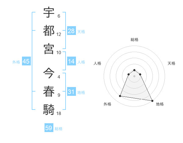宇都宮 今春騎さんの総格は59画の1点!