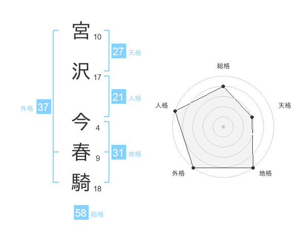 宮沢 今春騎さんを姓名の画数から五運を鑑定