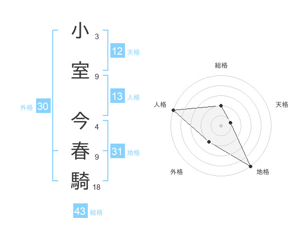 小室 今春騎さんを姓名の画数から五運を鑑定
