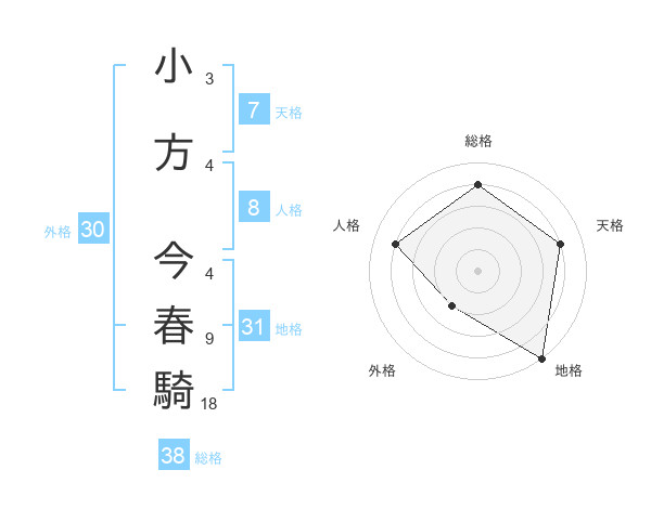 小方 今春騎さんを姓名の画数から五運を鑑定