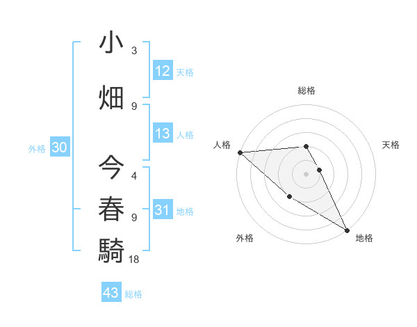 小畑 今春騎さんの天格は12画の1点!