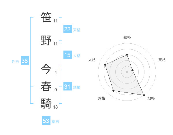 笹野 今春騎さんの天格は22画の1点!