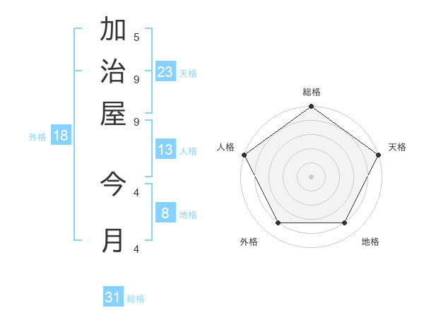 加治屋 今月さんを姓名の画数から五運を鑑定