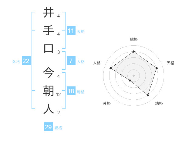 井手口 今朝人さんを姓名の画数から五運を鑑定