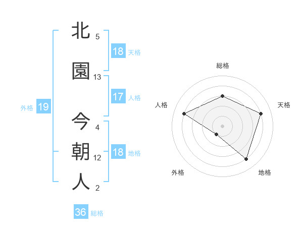 北園 今朝人さんを姓名の画数から五運を鑑定