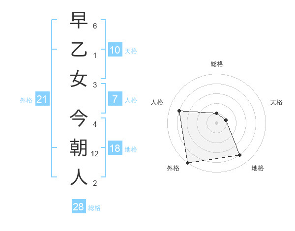 早乙女 今朝人さんの外格は21画の5点!
