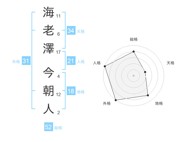 海老澤 今朝人さんを姓名の画数から五運を鑑定