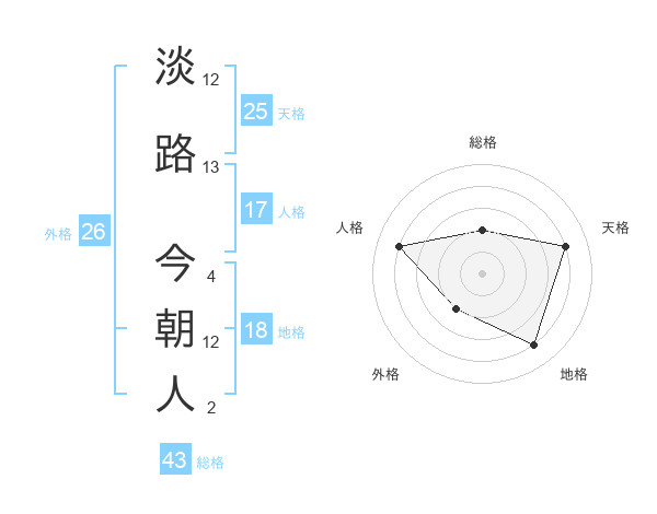 淡路 今朝人さんを姓名の画数から五運を鑑定